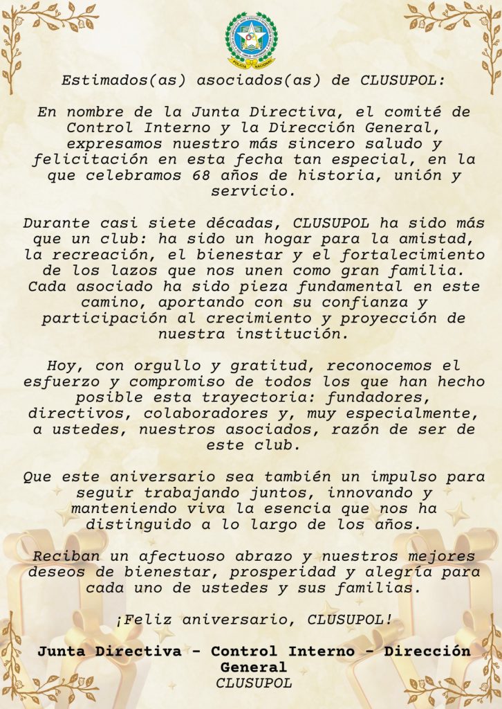 Preside: Junta Directiva y Dirección CLUSUPOL
